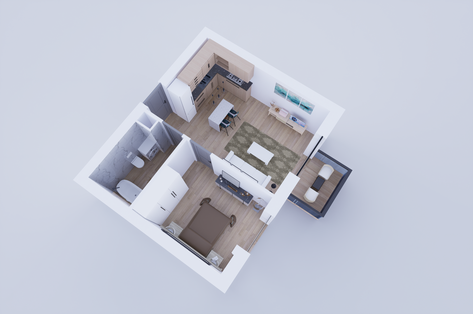 Virtuvė / svetainė: 17,72 m²