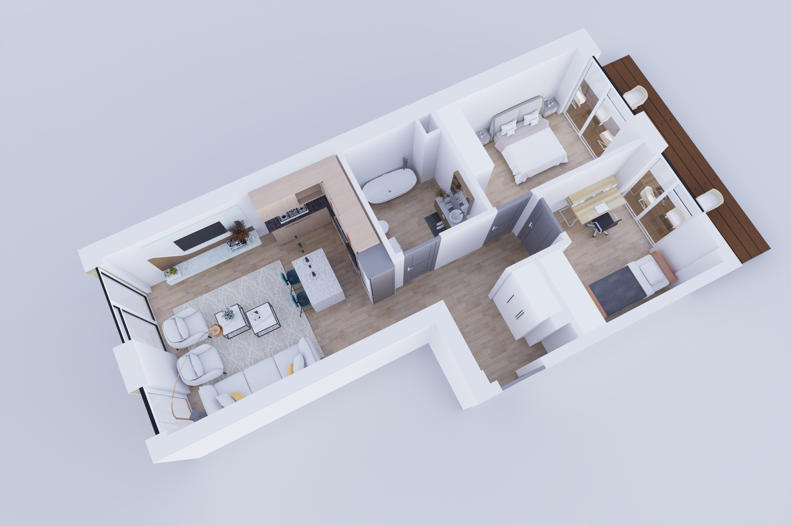 Virtuvė / svetainė: 21,14 m²
