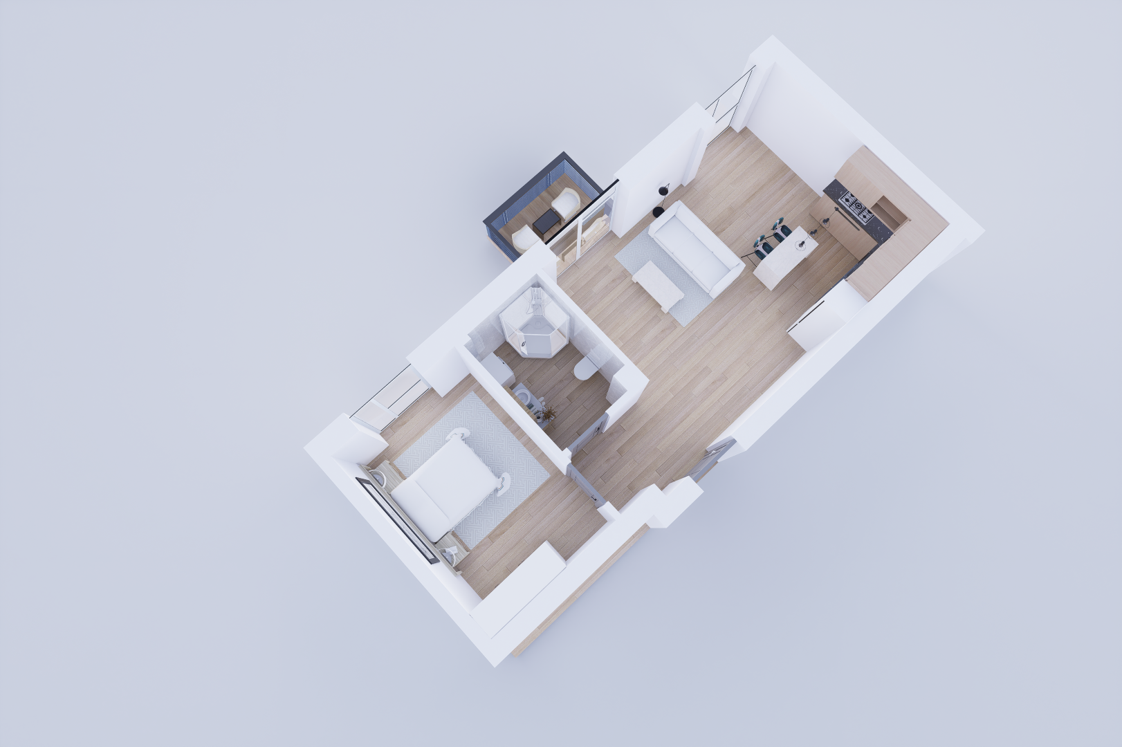 Virtuvė / svetainė: 24,53 m²